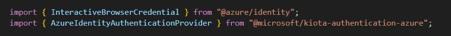To start, I am going to import an InteractiveBrowserCredential, this is because I am building a Single Page Application.