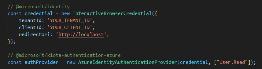 npm install @microsoft/kiota-authentication-azure @azure/identity